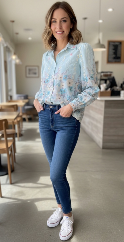 Blue floral full sleeve shirt